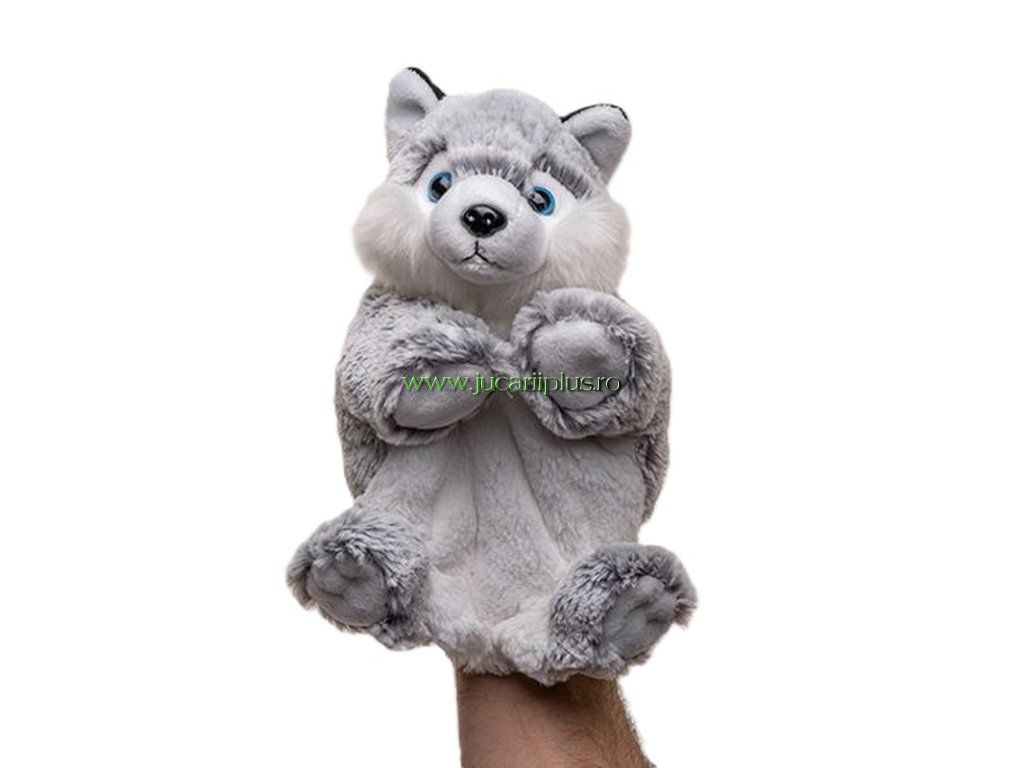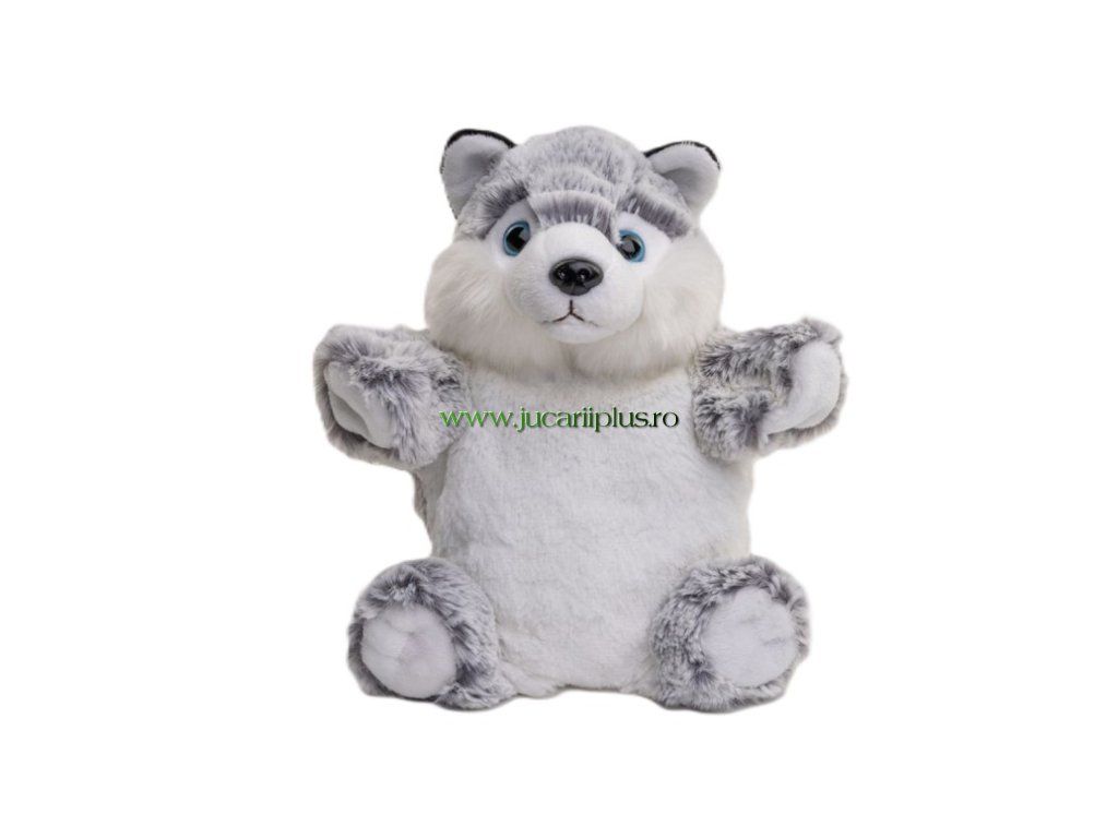 Câine husky de pluș, marionetă 25 cm